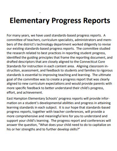 Download progree reports for elementary student samples PDF